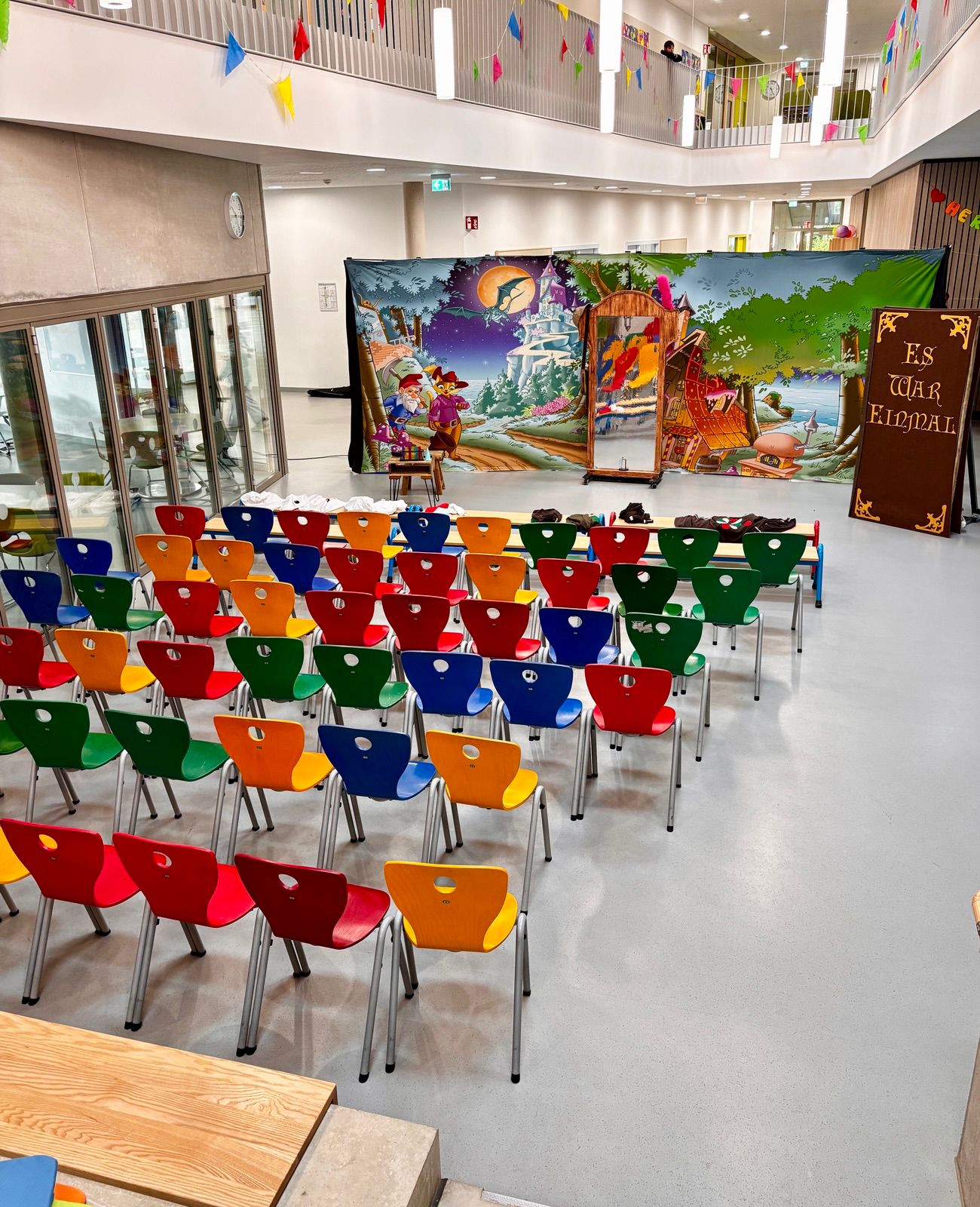 Im Rahmen der Frederikwoche zum Thema Märchen war die Tourneeoper mit „Es war einmal…“ zu Gast. Dank der Finanzierung durch den Förderverein der Hebelschule konnten alle Kinder umsonst eine Oper „live“ im Foyer der Hebelschule erleben. Die beiden ausgebildeten Opernsänger Justus und Lena zogen die Kinder mit ihrem humorvollen und beeindruckenden Auftritt sofort in ihren Bann und nahmen sie mit auf eine Reise ins Märchenland. Denn dieses war in Gefahr: Der mutige Professor und Märchenliebhaber Zacharias Zauberkobel benötigte zur Rettung der Märchenwelt die Hilfe der Kinder und einiger Märchenfiguren, wie z.B. dem gestiefelten Kater oder Rotkäppchen. Besonders fasziniert waren die Kinder von der magischen Tür, durch welche die beiden Darsteller immer wieder in die Märchenwelt „verschwanden“, um in neuem Gewand zurückzukehren. Die verschiedenen Märchenfiguren waren unglaublich bezaubernd dargestellt und spätestens beim Einsatz der vielen Mitspielkinder aus allen Klassen waren auch die letzten Kinder begeistert. Das zuvor eingeübte Mitspiellied band alle Schülerinnen und Schüler mit ein und ließ sie Teil des Märchens werden.  Es war ein beeindruckender Vormittag und natürlich wollen wir dieses tolle Projekt auch in den kommenden Jahren realisieren!